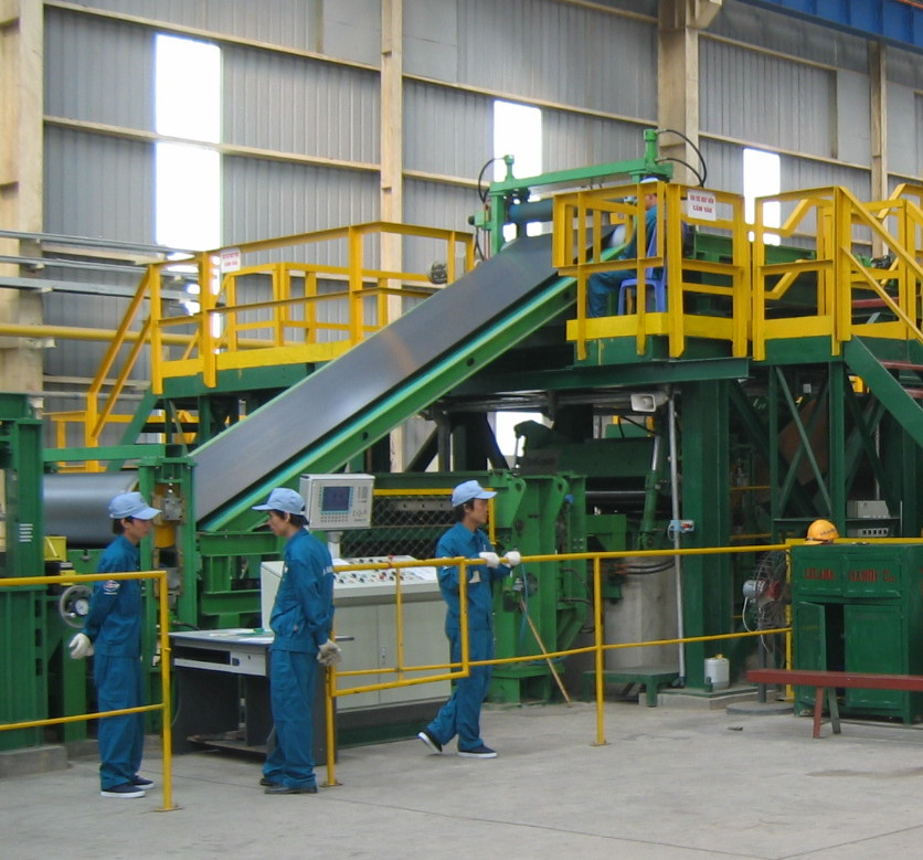 Loading manually →Coil loading car→No.1 payoff reel → No.1 payoff scraper→No.2 payoff reel →No.2 payoff scraper →No.1 five-roll straightening leveler →No.2 five-roll straightening leveler →Deflector roll→Double-layer shear →Converge pinch roll →Welding machine →No.1 bridle roll →No.1 horizontal loop →No.1 CPC →No.2 bridle roll →descaler →No.3 bridle roll →No.2 double roll CPC →Pickling →Water washing →Drying →Loop →No.4 bridle roll →Pinch CPC unit →Scrap coiling →Three-roll tension roller →Exit shear →Oiling machine →Exit deflcting pressing roll→ Tension reel →Coil unloading car →Coi receiving table